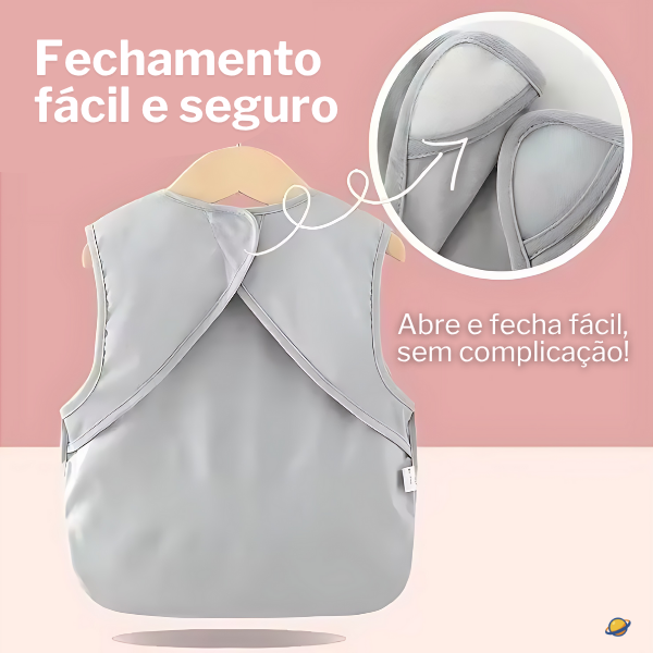 - Proteção total: cobre bem a frente da criança, impedindo manchas de comida nas roupas e tornando as refeições muito mais tranquilas para os pais.