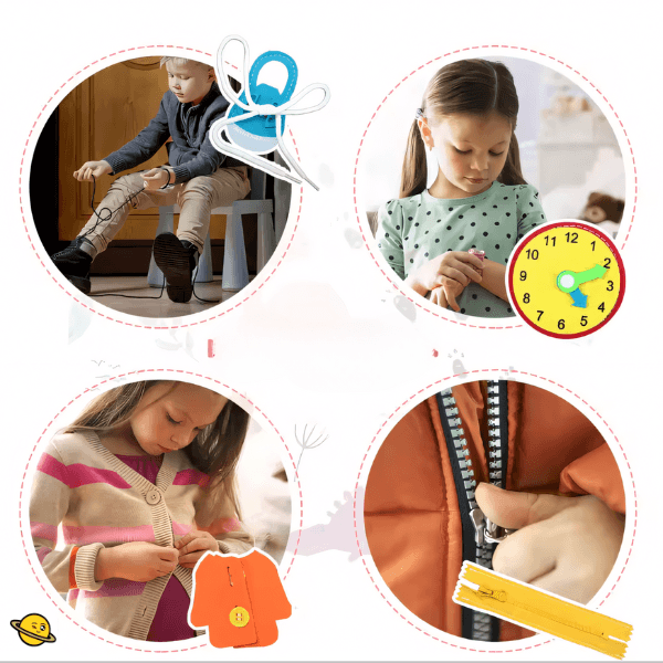 • Aprendizado prático do dia a dia: Ensina habilidades como amarrar cadarços, abrir zíperes e usar botões, ajudando na independência dos pequenos.