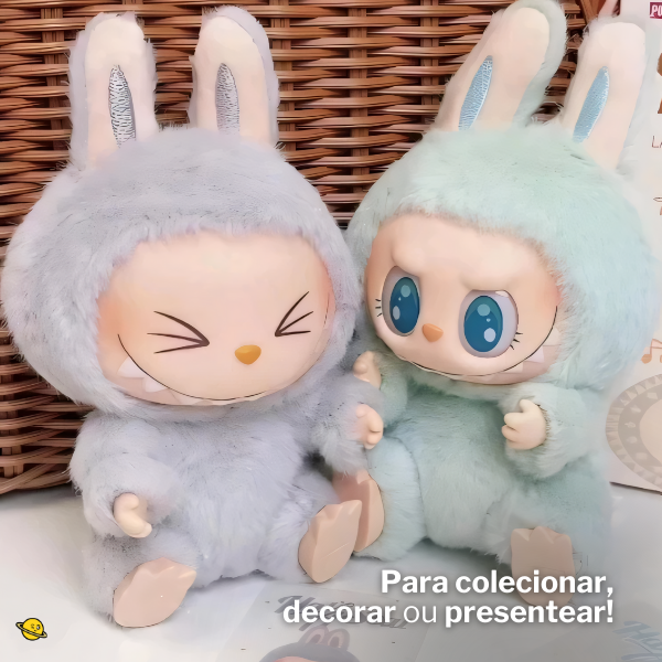 Um amigo de pelúcia sempre por perto: Com seu corpo macio e o rostinho em vinil, Labubu é feito para abraçar, brincar e enfeitar.