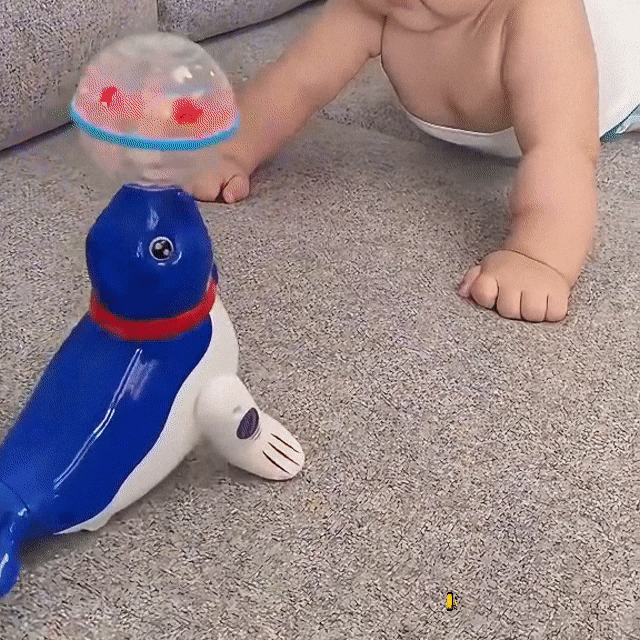 Movimento 360° – O leão marinho gira completamente sobre sua base, criando um espetáculo visual hipnotizante para as crianças.