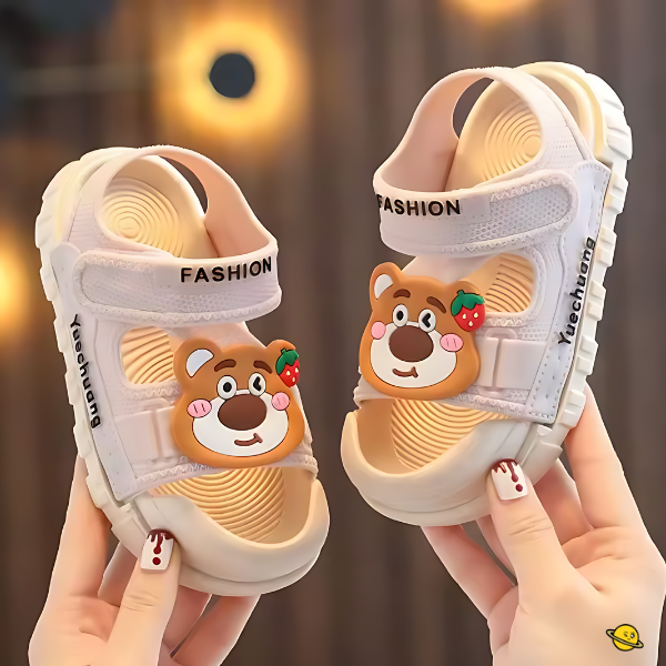 Com um design encantador, essas sandálias trazem a alegria da infância em cada detalhe. O urso em desenho animado, com cores divertidas e alegres, conquista as crianças de imediato, tornando o momento de se calçar muito mais animado.