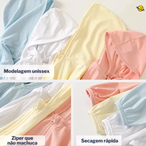 Feito com tecido de poliéster de alta qualidade e toque gelado, o Brincarzi é ultraleve, respirável e macio, permitindo que a pele respire mesmo nos dias mais quentes.