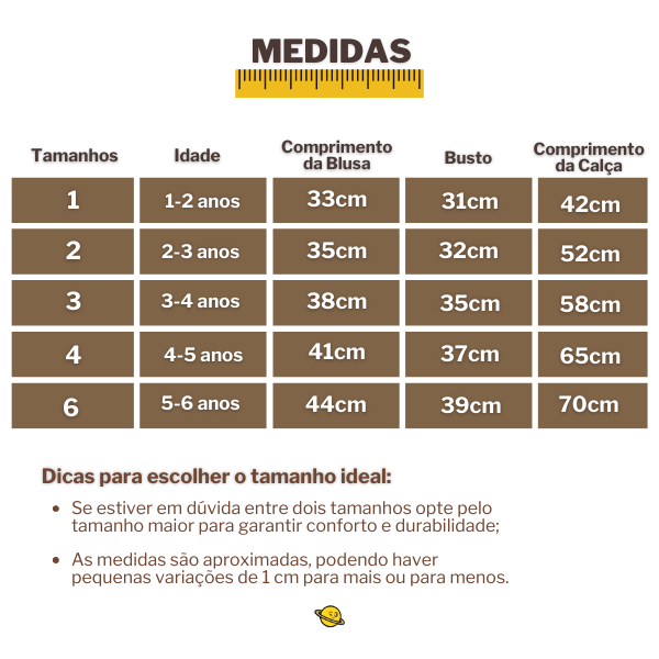 Modelagem confortável: conjunto de blusa e calça que veste super bem, sem apertar, com caimento ideal para noites de descanso e dias de brincadeiras.