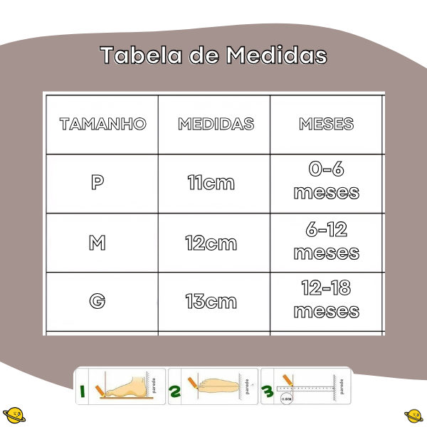 Ideal para bebês de 0 a 18 meses. Consulte nossa tabela para escolher o tamanho ideal para o seu pequeno.