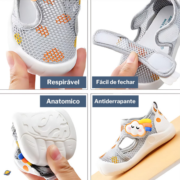 Possui fecho em velcro (Hook & Loop) que facilita o calce, garantindo ajuste perfeito e seguro — ideal para pais que valorizam praticidade no dia a dia.