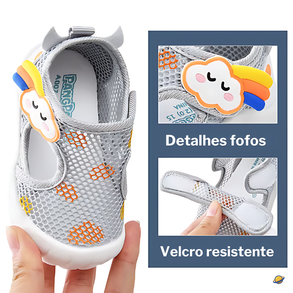 Feita com materiais leves, macios e respiráveis, ela garante conforto durante todo o dia — seja nas brincadeiras ao ar livre, nos passeios em família ou nos primeiros passinhos dentro de casa. Seu design é encantador, alegre e funcional — unindo o visual fofo com toda a segurança e praticidade que os pais procuram.